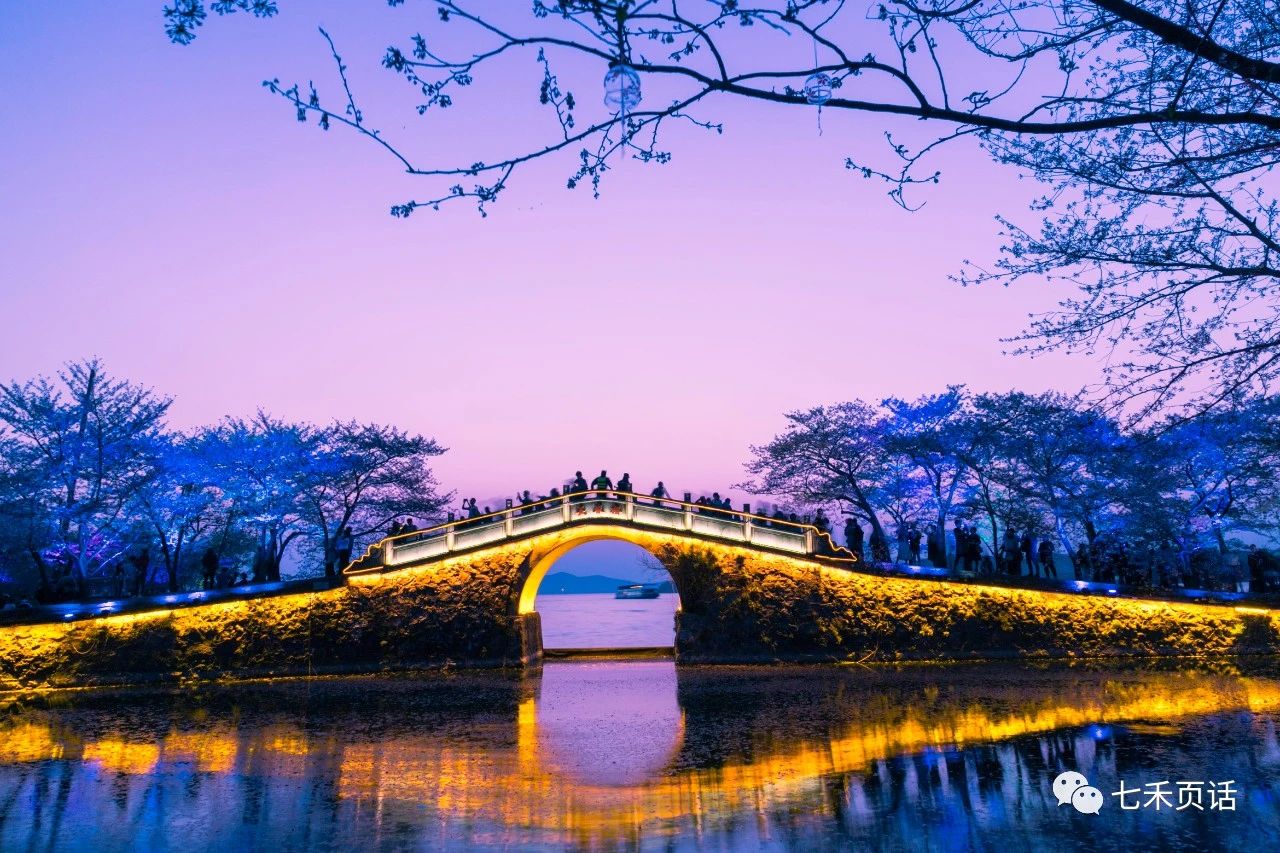 不过最美的当属长春桥和长春花漪的樱花,然后夜色来临,灯光亮起,给粉白的樱花换了颜色,是为夜樱。